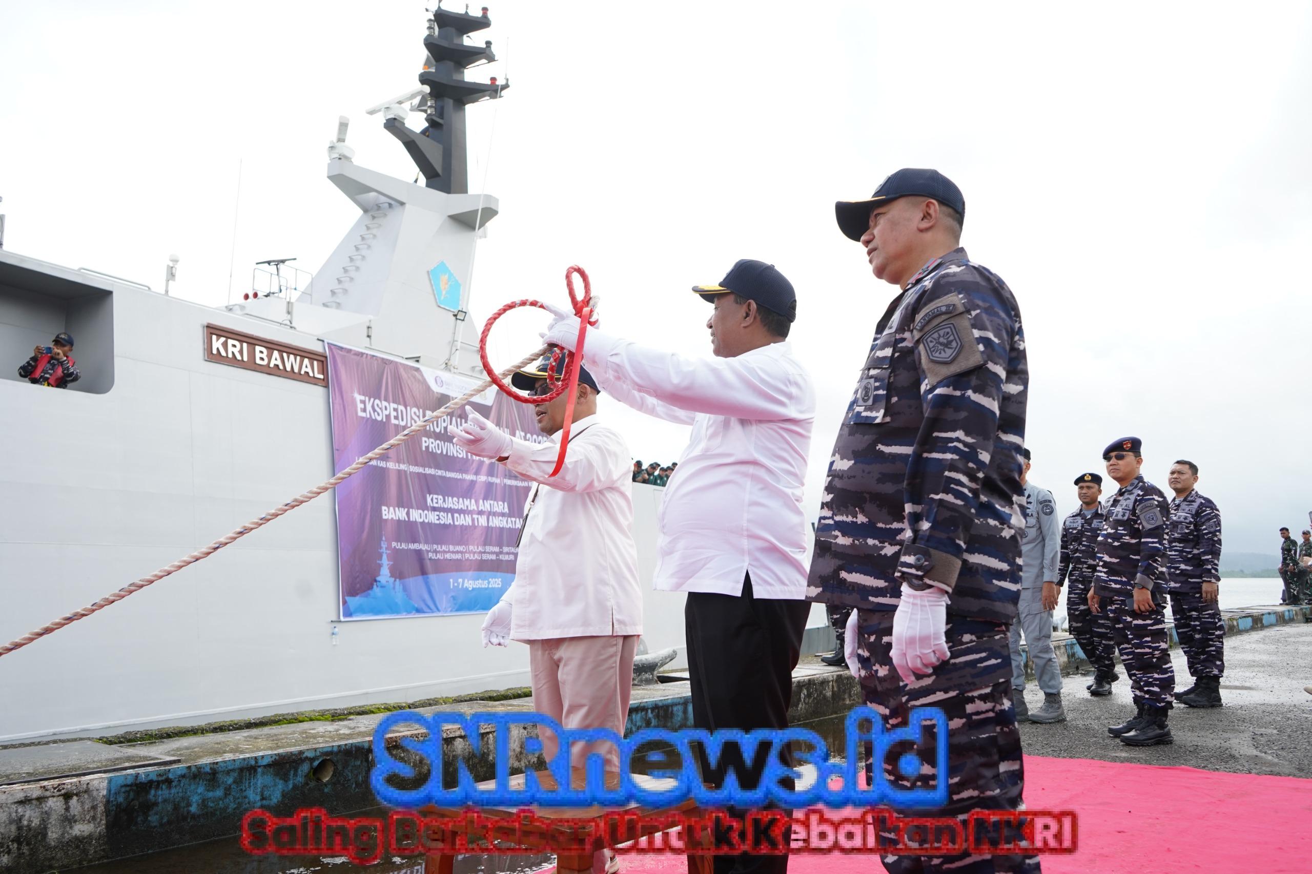 TNI AL, Ambon,- Komandan Pangkalan Utama TNI Angkatan Laut (Danlantamal) IX Ambon Brigadir Jenderal TNI (Mar) Suwandi, S.A.P., M.M., mengikuti Pelepasan Tim Ekspedisi Rupiah Berdaulat (ERB) 2025 yang diselenggarakan oleh Bank Indonesia Provinsi Maluku, bertempat di Dermaga Irian Lantamal IX Ambon, Halong, Baguala, Kota Ambon, Maluku, Jumat (01/08/2025).