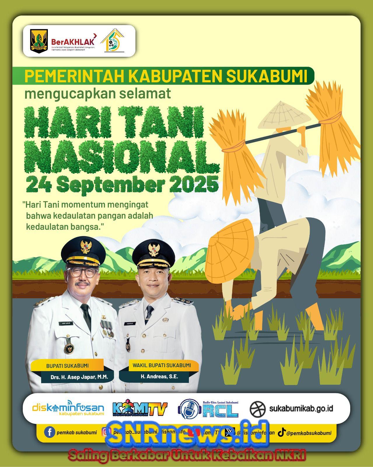 SUKABUMI — Dalam semangat Sukabumi Mubarokah—yang berarti Maju, Unggul, Berbudaya, dan Berkah—Bupati Sukabumi Asep Japar menyampaikan penghormatan mendalam kepada para petani dalam momentum Hari Tani Nasional 2025. Menurutnya, petani adalah penjaga kehidupan, pelestari budaya agraris, dan fondasi kedaulatan bangsa.