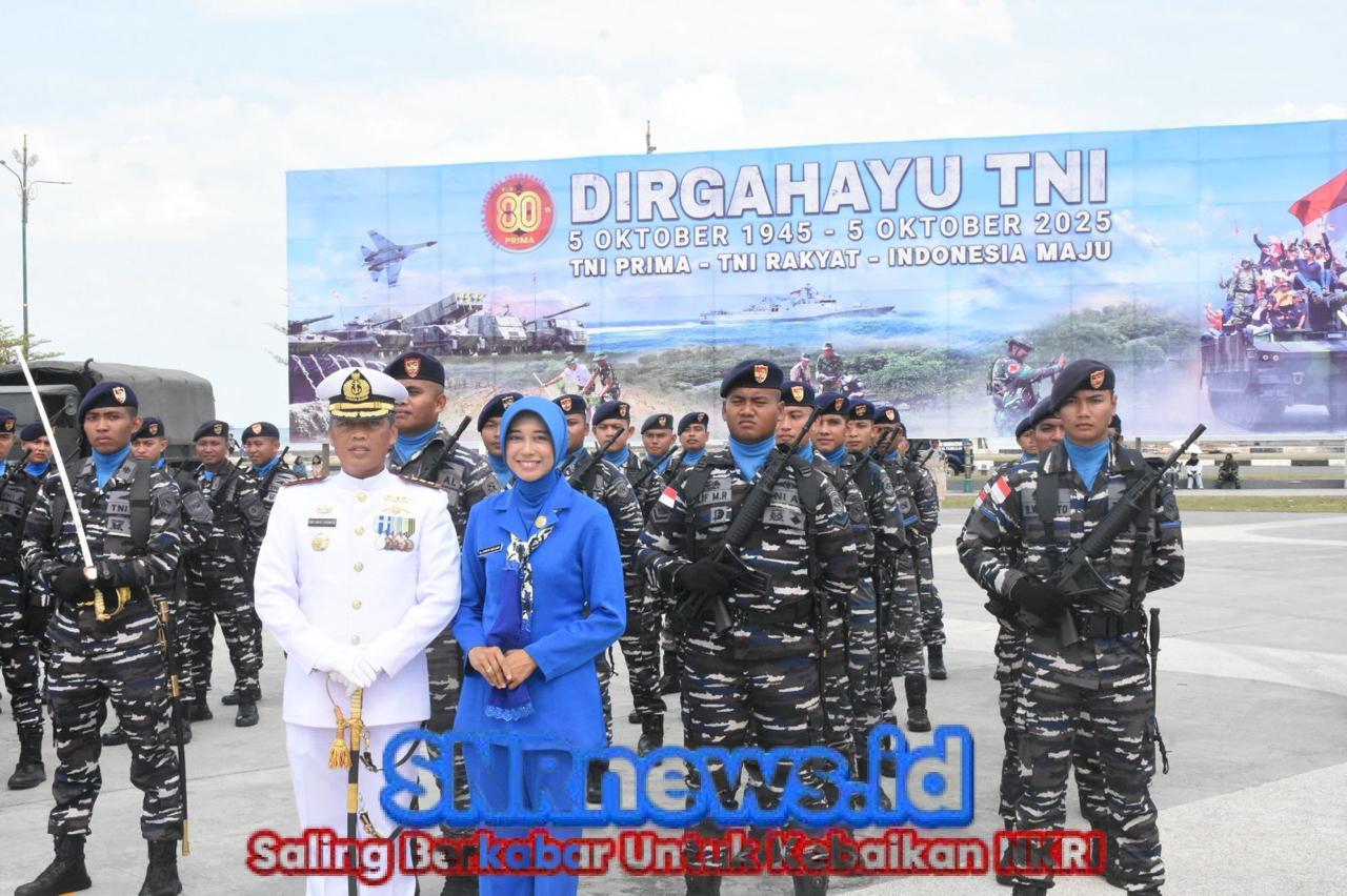 TNI AL, Bintan,- Komandan Lanal Bintan Kolonel Laut (P) Dr. Eko Agus Susanto, S.E., M.M., didampingi Ketua Cabang 5 Daerah Kodaeral IV Ny. Erni Eko Agus Susanto hadir pada Upacara Peringatan HUT Ke-80 Tentara Nasional Indonesia (TNI) yang digelar dengan khidmat di Kawasan Tugu Sirih Tanjungpinang, Minggu, (05/10/2025).