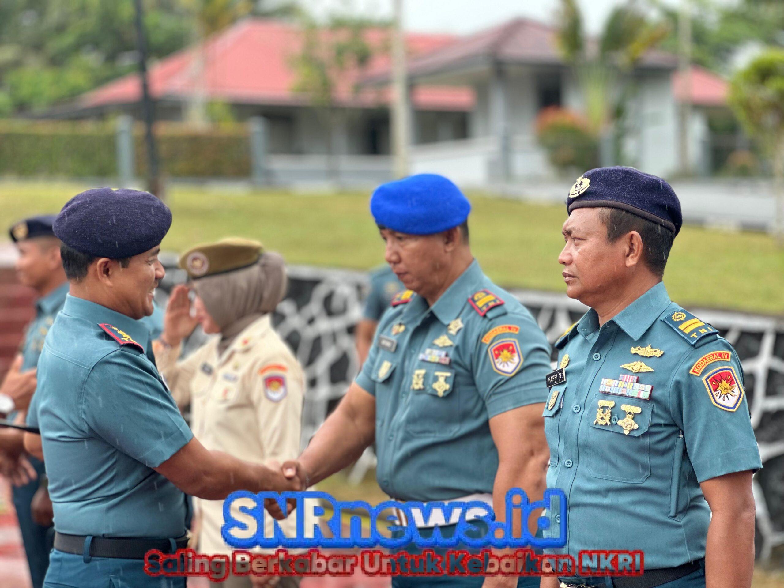 Danlanal Dabo Singkep Pimpin Upacara Kenaikan Pangkat Personel Lanal Dabo Singkep di Tengah Guyuran Hujan
