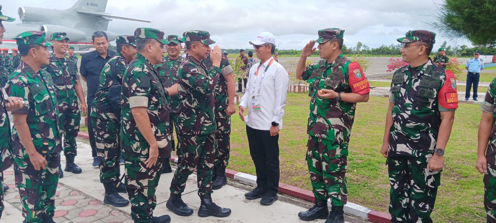 TNI AL, Sabang,- Komandan Lanal Sabang (Danlanal Sabang) Kolonel Laut (P) Gita Muharam, M.Sc., bersama unsur Forkopimda ikut menghadiri sekaligus menyambut kedatangan Panglima TNI Agus Subianto, S.E., M.Si., dalam rangka mendampingi Presiden Republik Indonesia Ir. Joko Widodo dan Ibu Iriana Joko Widodo, bertempat di Pangkalan Udara Sultan Iskandar Muda (Lanud SIM) Senin (09/09/2024).