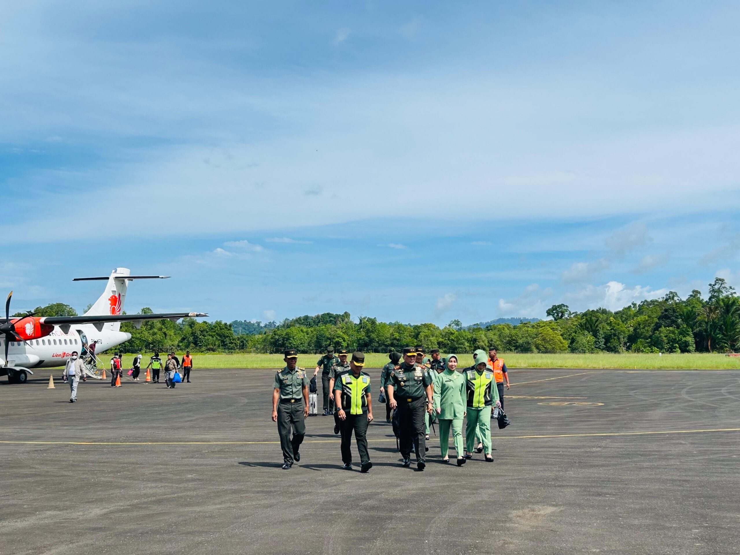 TNI AL, Simeulue,- Komandan Pangkalan TNI AL Simeulue Letkol Laut (P) Oyu Mulia Sukmana, S.T., M.T,.M.Tr. Opsla., didampingi Ketua Jalasenastri Cabang 8 Korcab l DJA l Ny. Meylina Oyu Mulia menghadiri penyambutan Kedatangan Pangdam Iskandar Muda Mayjen TNI Niko Fachrizal, M.Tr.(Han) beserta Ny. Eva Niko Fachrizal, bertempat di Bandar Udara Desa Lasikin, Kecamatan Teupah Tengah, Kabupaten Simeulue, Sabtu (21/09/2024).