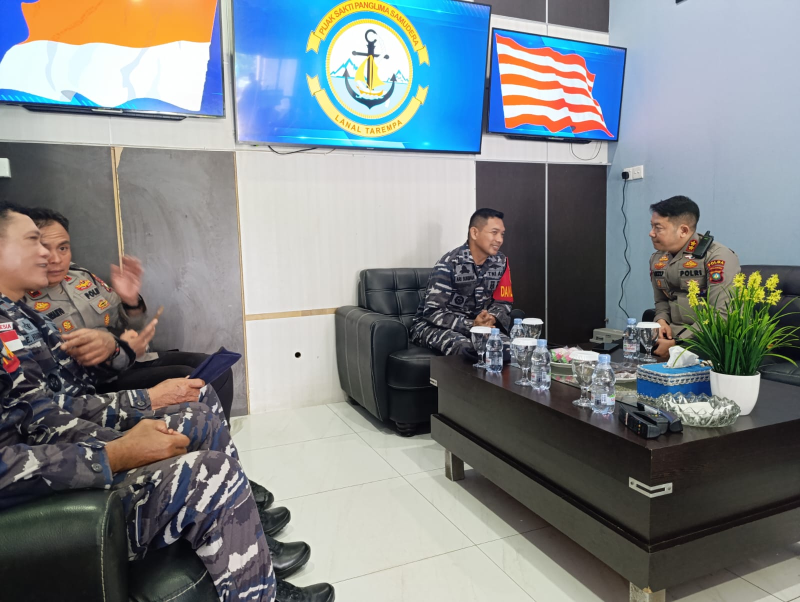 Sebagai wujud sinergitas dan keharmonisan antara Lanal Tarempa dan Polres Kepulauan Anambas, Danlanal Tarempa didampingi seluruh Perwira Staf menyambut dengan terbuka rombongan Kapolres Kepulauan Anambas yang berkunjung di Mako Lanal Tarempa dimana AKBP Raden Ricky Pratidiningrat, S.I.K., M.H., baru saja menjabat Kapolres Kepulauan Anambas.
