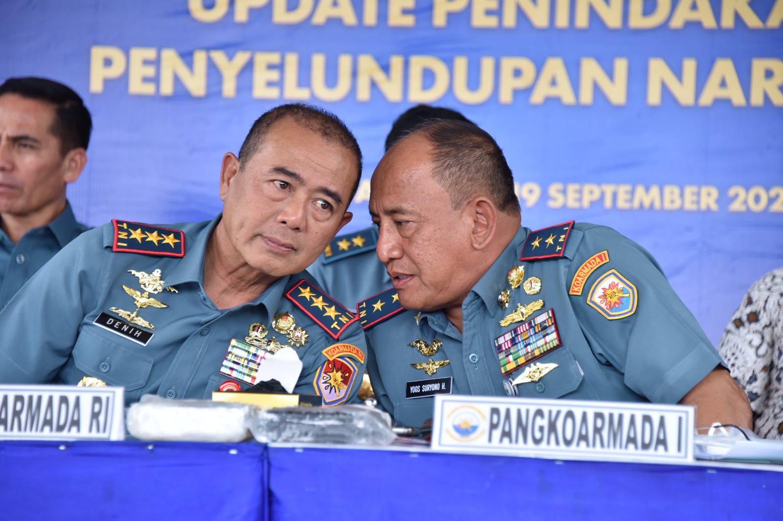 DANLANTAMAL I DAMPINGI PANGKOARMADA RI DAN PANGKOARMADA I PADA PRESS CONFERENCE PEMUSNAHAN BARANG BUKTI NARKOTIKA JENIS KOKAIN
