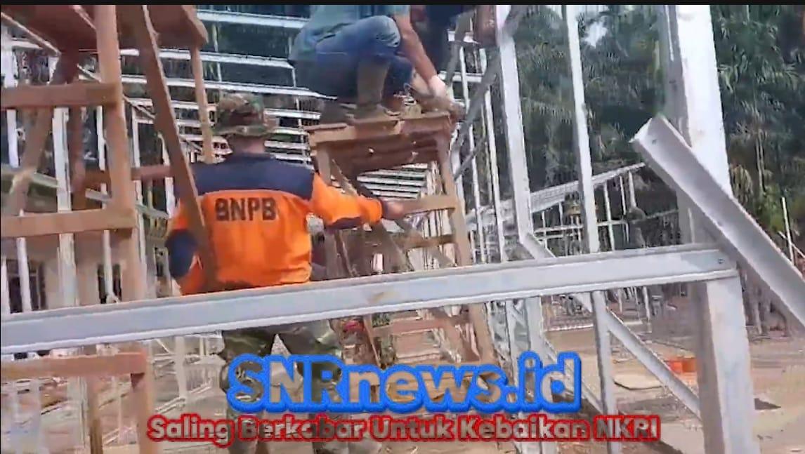 Snrnews.com, Agam — Rangka untuk hunian sementara (huntara) sebagian sudah terpasang di Lapangan Bola Nagari Salareh Aia, Jorong Kayu Pasak, Kecamatan Palambayan, Kabupaten Agam, Sumatera Barat. Progres pembangunan huntara semakin terlihat.