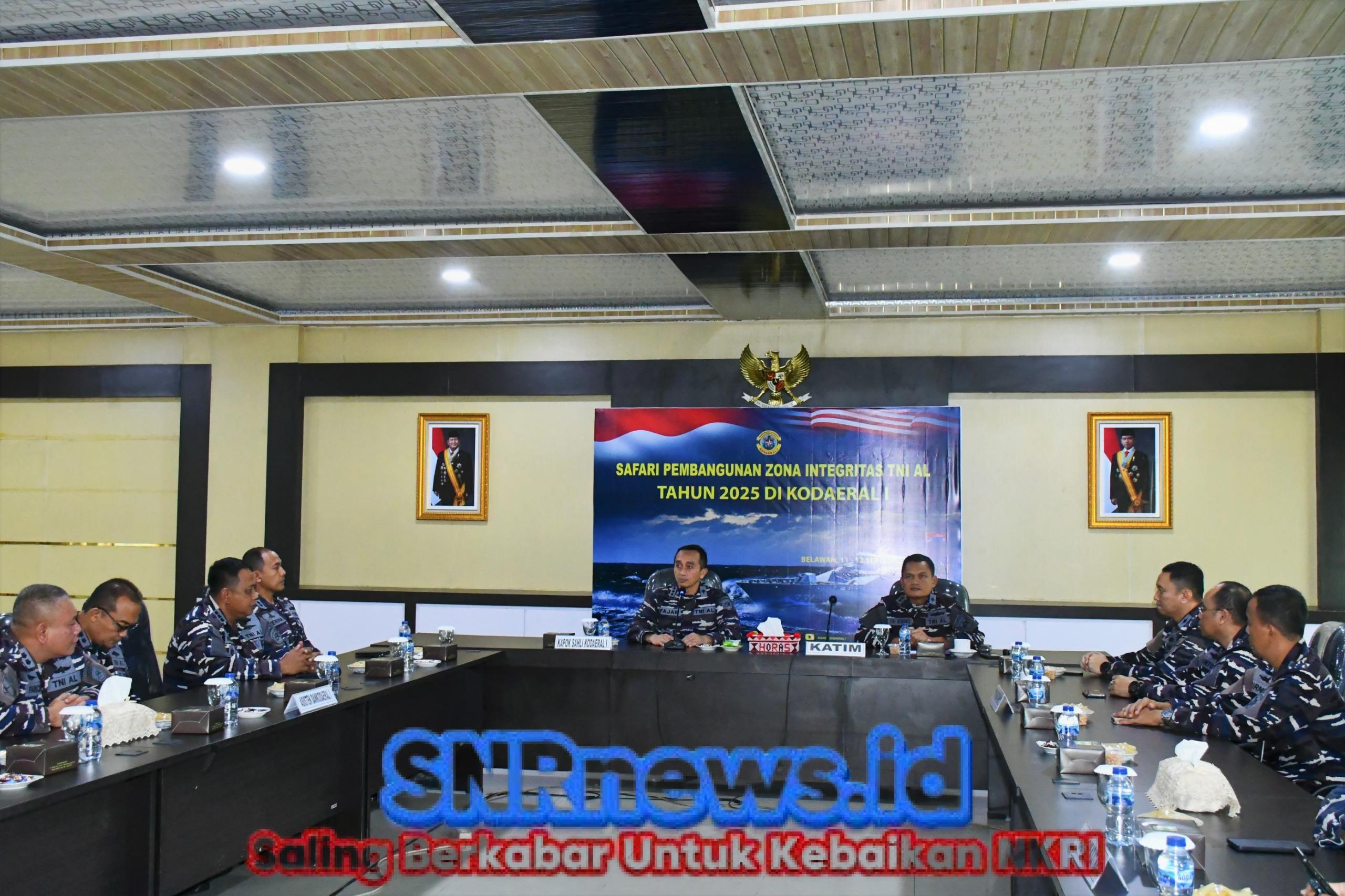 TNI AL, Belawan,- Komandan Komando Daerah Angkatan Laut I (Dankodaeral I) Laksamana Muda TNI Deny Septiana, S.I.P., M.A.P., yang diwakili Kapok Sahli Kodaeral I Kolonel Laut (P) Fajar Tri Rohadi, S.E., memimpin Penutupan Safari Pembangunan Zona Integritas TNI Angkatan Laut Tahun 2025, bertempat di Ruang R. Mulyadi Mako Kodaeral I, Jalan Serma Hanafiah No. 01 Belawan, Sumatera Utara, Jumat (12/09/2025).