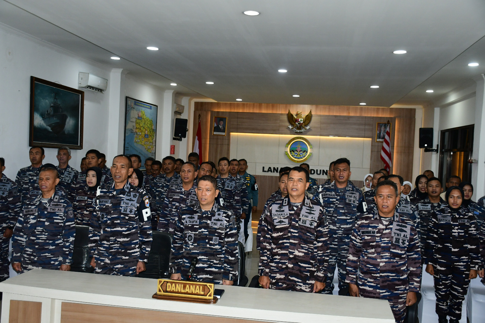 TNI AL, Bandung,– Komandan Lanal Bandung Kolonel Laut (P) Muhammad Taufik, M.Tr.Hanla., M.M., beserta Prajurit dan PNS Lanal Bandung mengikuti Exit Briefing Pangkoarmada I Laksamana Muda TNI Dr. Yos Suryono Hadi, M.Tr.Han., M.Tr.Opsla., secara Virtual, bertempat di Aula Mako Lanal Bandung, Jalan Aria Jipang No. 8 Kota Bandung, Sabtu (15/03/2025).