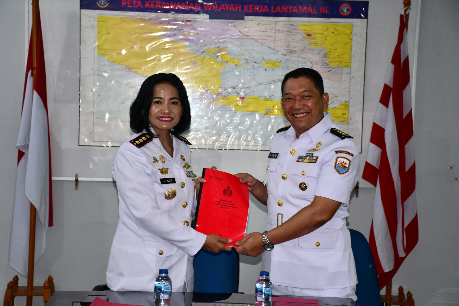 TNI AL, Bandung,- Menjelang dilaksanakan Serah Terima Jabatan (Sertijab), Komandan Lanal Bandung Kolonel Laut (KH/W) Dr. Renny Setiowati, S.T., M.Sc., M.Tr.Hanla., membacakan dan menyerahkan naskah memorandum kepada calon penggantinya Kolonel Laut (P) Muhammad Taufik, M.Tr.Hanla., M.M., yang dilaksanakan di Ruang Rapat Sintel Lantai 4 Lantamal III, Jakarta Utara, Rabu (11/09/2024).