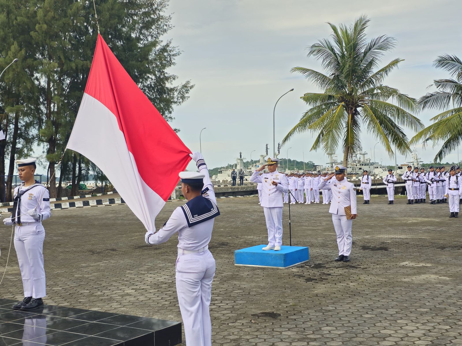Pelaksanaan upacara tersebut dipimpin oleh Komandan Lanal Bintan Kolonel Laut (P) Dr. Eko Agus Susanto, S.E., M.M., sebagai Unspektut Upacara, dengan Komandan Upacara Kapten Laut (P) Imin Yusnadi yang sehari-hari menjabat sebagai Komandan Posal Berakit. Kegiatan upacara diikuti oleh Perwira, Bintara, Tamtama dan ASN dari gabungan Prajurit Lanal Bintan, Prajurit Satran Koarmada I, Prajurit Satkat Koarmada I, Prajurit Satdik 1 Kodiklatal, dan Prajurit Fasharkan Mentigi.