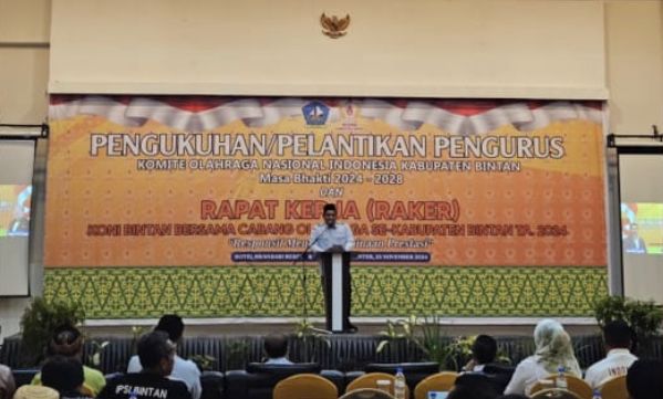 Pada kesempatan tersebut, Komandan Lanal Bintan Kolonel Laut (P) Dr. Eko Agus Susanto, S.E., M.M., menyampaikan ucapan selamat atas pelantikan pengurus KONI Bintan periode baru. Dengan harapan pelantikan ini bukan hanya sekedar seremonial belaka, tetapi merupakan tonggak sejarah baru dalam perjalanan pengembangan olahraga di Kabupaten Bintan, karena olahraga bukan hanya sekadar kegiatan fisik, tetapi juga merupakan sarana untuk membangun karakter, disiplin, dan semangat juang. Oleh karena itu, pembangunan olahraga harus menjadi prioritas dalam pembangunan daerah.