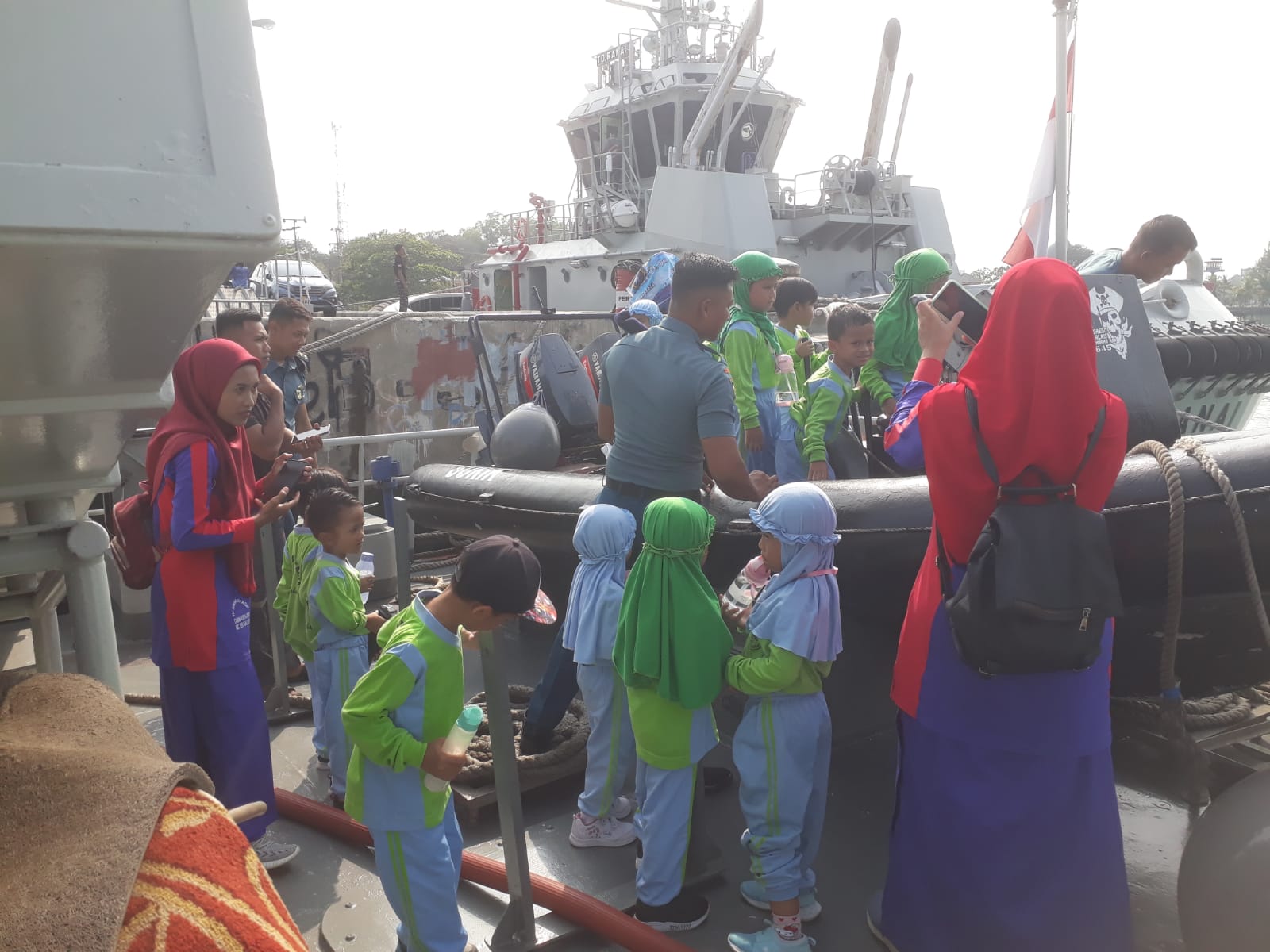 Saat berada di kapal, para siswa-siswi diajak berkeliling kapal, dengan diberi penjelasan oleh Personel Lanal Bintan dan Personel KRI Surik-645 tentang persenjataan yang dimiliki serta cara pengoperasian kapal yang dipandu oleh personel KRI Surik-645 dan KRI Baladau-643.