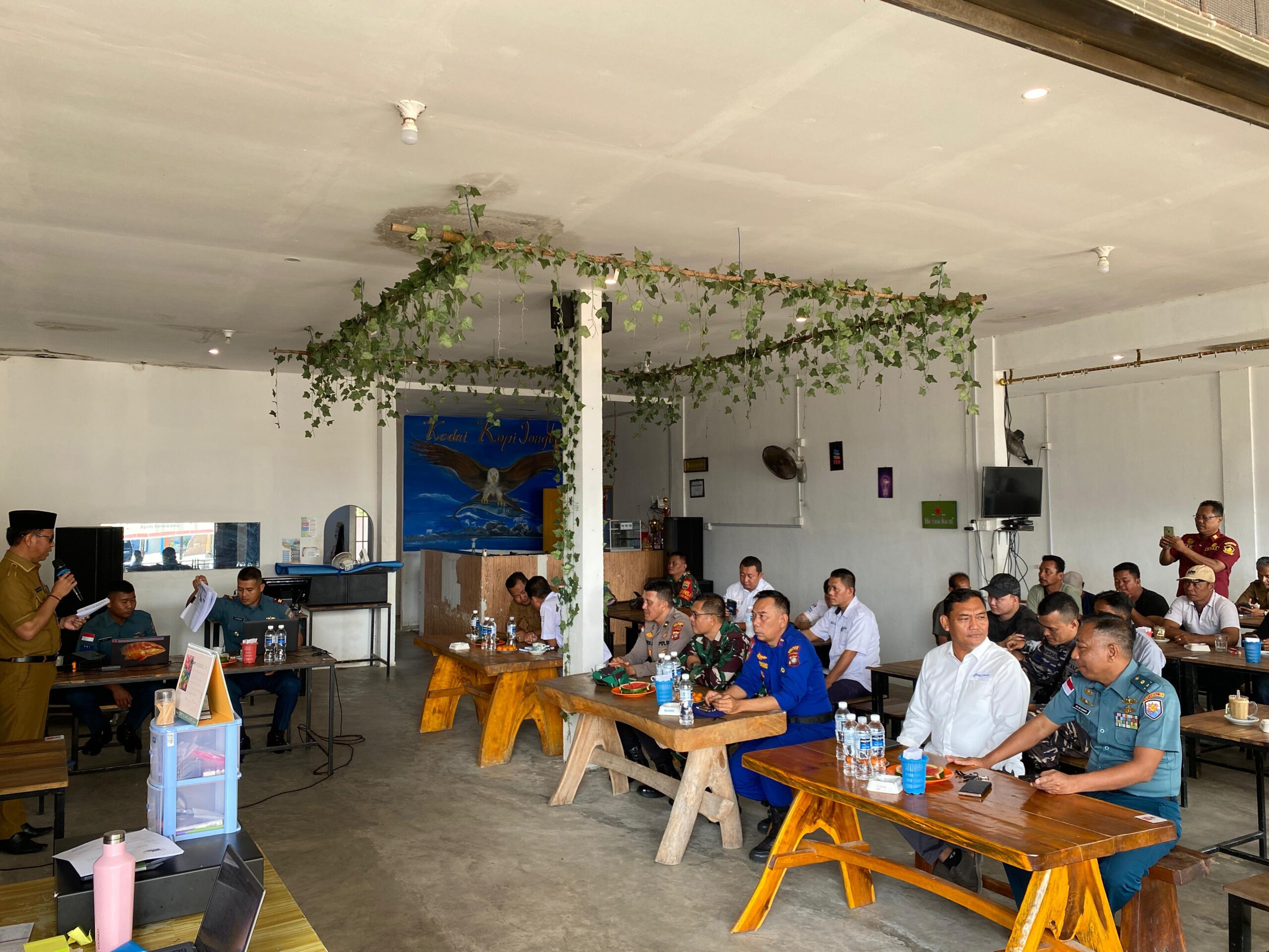 TNI AL, Bintan,- Bertempat di Jongkong Sei Enam, Bintan, Danlanal Bintan Kolonel Laut (P) Dr. Eko Agus Susanto, S.E.,M.M., melaksanakan Coffee Morning dan Sosialisasi Sistem Pelaporan Informasi Hidrografi TNI AL bersama masyarakat maritim di Bintan, Selasa (4/2/2025).