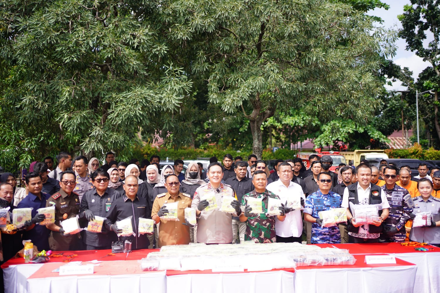 “Penghargaan dan penghormatan setinggi-tingginya kepada Bapak/Ibu semua, karena tanpa Bapak/Ibu, tanpa teman-teman TNI, tanpa teman-teman BINDA, tanpa teman-teman BNN, tanpa teman-teman Kejaksaan, tanpa khususnya teman-teman Provinsi, teman-teman DPRD Provinsi, Kabupaten, Kota, tanpa Bapak-Bapak dari Lembaga Adat, Organisasi Islam, Organisasi Keagamaan, tanpa Bapak-Bapak semua, kami Polri tidak berarti apa-apa,” ujar Kapolda menutup sambutannya.