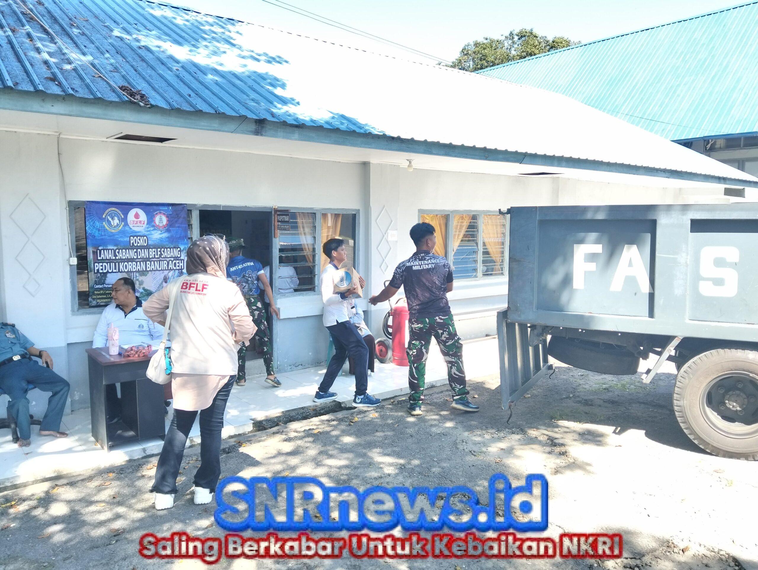 Snrnews.id, Sabang, TNI AL – Dalam semangat kemanusiaan dan solidaritas, Pangkalan TNI AL (Lanal) Sabang bersama Yayasan Blood For Life Foundation (BFLF) Aceh mendirikan Posko Peduli Korban Banjir Aceh di Mako Lanal Sabang, Jalan Yos Sudarso, Kuta Ateuh, Kecamatan Sukajaya, Kota Sabang, Selasa (2/12/2025).
