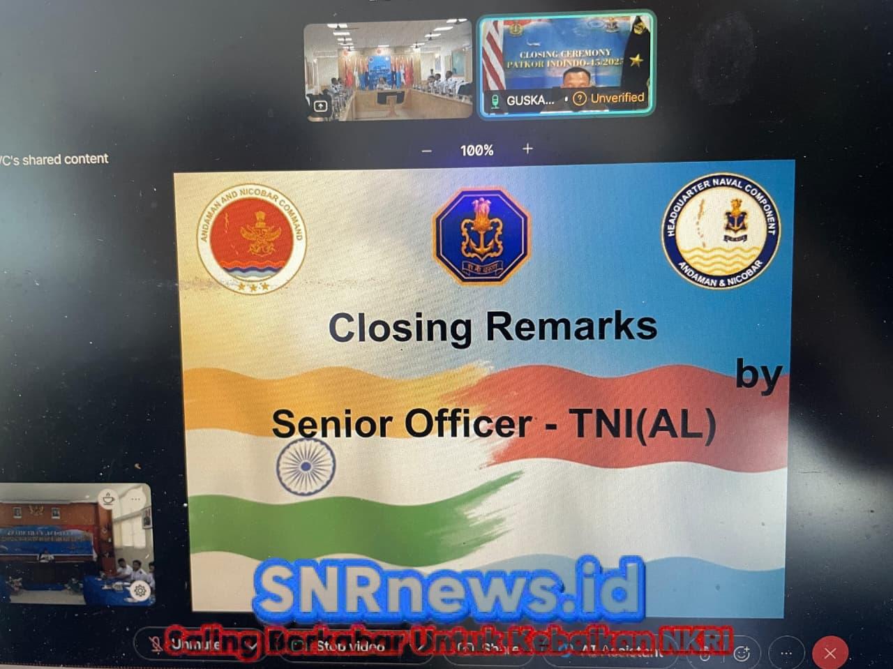 TNI AL, Sabang,- Komandan Pangkalan TNI AL (Danlanal) Sabang Kolonel Laut (P) Sadimin, S.E., M.Tr.Opsla., selaku Dansatgas Patkor Indindo-45/2025 gelar kegiatan Closing Ceremony Patkor Indindo 45/2025 secara virtual yang didampingi Pejabat Utama serta Perwira TNI AL yang berada di wilayah Kota Sabang bersama Indian Navy yang berada di India. Kegiatan tersebut digelar di Aula Teuku Umar Mako Lanal Sabang, Jalan Yos Sudarso, Kuta Ateuh, Kecamatan Sukakarya, Kota Sabang, Selasa (16/12/2025).