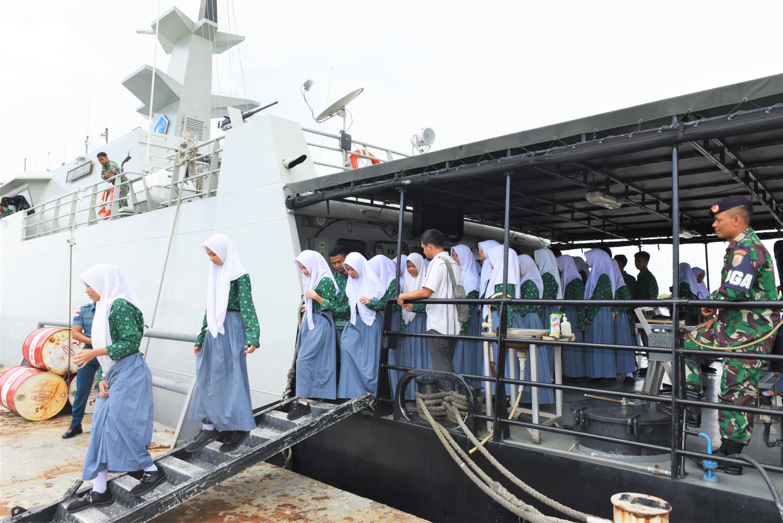 TNI AL, Belawan,- Pangkalan Utama TNI Angkatan Laut (Lantamal I) menggelar Open Ship kepada para Pelajar dan Guru, bertempat di KRI Torani-860 yang sandar di Dermaga Mako Lantamal I, Jalan Serma Hanafiah No.01 Belawan, Sumatera Utara, Rabu (16/10/2024).