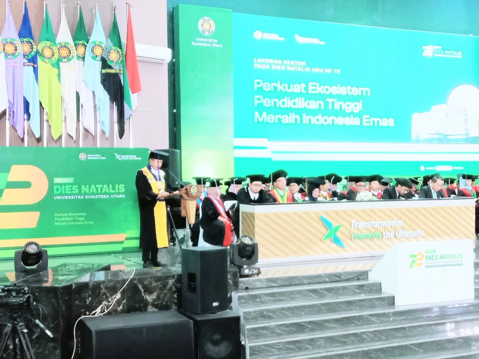 Pj. Gubernur Sumatera Utara mengatakan kegiatan ini bukan hanya sekedar peringatan bertambahnya usia, namun juga sebagai tonggak sejarah dalam perjalanan panjang Universitas Sumatera Utara yang telah melahirkan pemikiran dan lulusan terbaik yang telah banyak berkontribusi diberbagai profesi dan pengabdian baik dalam negeri maupun luar negeri.