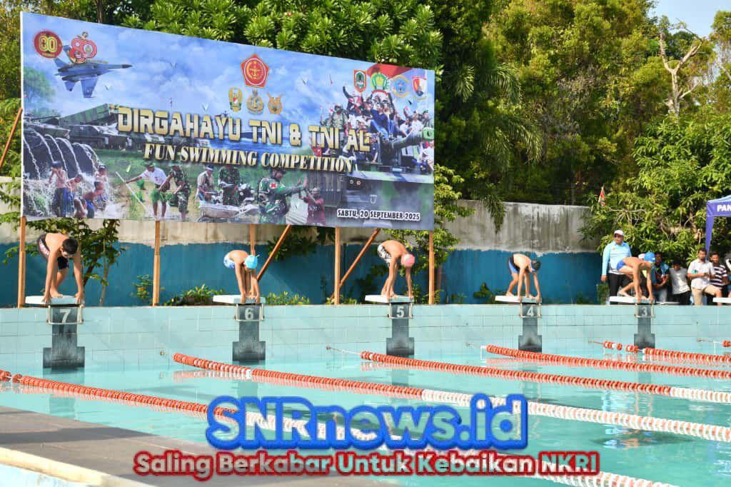 TNI AL, Banjarmasin,- Dalam rangka memeriahkan HUT Ke-80 TNI dan TNI AL Tahun 2025, Jajaran TNI di Kalimantan Selatan meliputi Korem 101/Antasari, Lanal Banjarmasin, Lanud Sjamsudin Noor gelar Lomba Fun Swimming Competition yang didukung oleh pemerintah dan stake holder terkait di Provinsi Kalimantan Selatan. Kegiatan dilaksanakan di Kolam Renang Gelanggang Olahraga Hasanudin, Banjarmasin, Kalsel, Sabtu (20/9/2025).