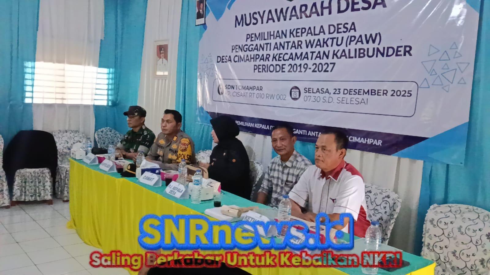 Kalibunder Sukabumi– Pemilihan Kepala Desa (Pilkades) Penggantian Antar Waktu (PAW) Desa Cimahpar, Kecamatan Kalibunder, Kabupaten Sukabumi, telah berhasil diselenggarakan pada Selasa, 23 Desember 2025. Kegiatan yang diikuti oleh 163 pemilih sah ini bertempat di SDN Cimahpar 01, Desa Cimahpar. Dari hasil perhitungan suara, calon nomor urut 2, Cep Wahyu Bahrul Ulum, unggul dengan perolehan 91 suara, mengalahkan calon nomor urut 1, Daman, yang memperoleh 72 suara. Dengan demikian, Cep Wahyu Bahrul Ulum resmi terpilih sebagai Kepala Desa Cimahpar untuk periode 2019-2027.