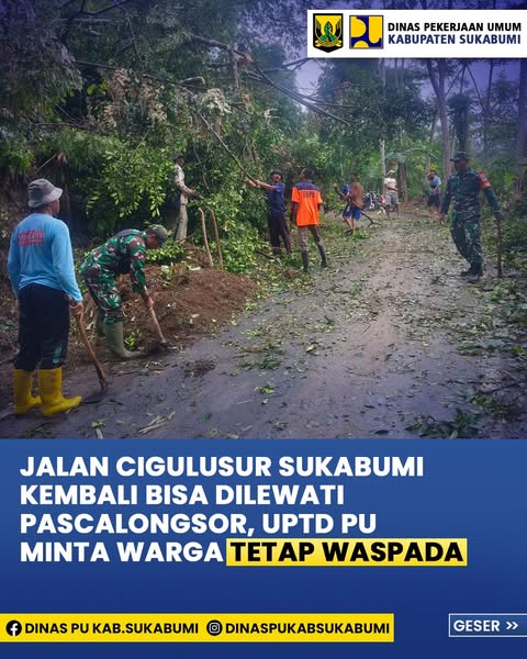 Sukabumi, – Dinas Pekerjaan Umum (PU) melalui UPTD Wilayah Sagaranten bergerak sigap menangani longsor yang menutupi beberapa ruas jalan di Kabupaten Sukabumi. Bersama TNI-Polri, BPBD, dan warga setempat, evakuasi material longsoran dilakukan pada Senin (10/3/2025).