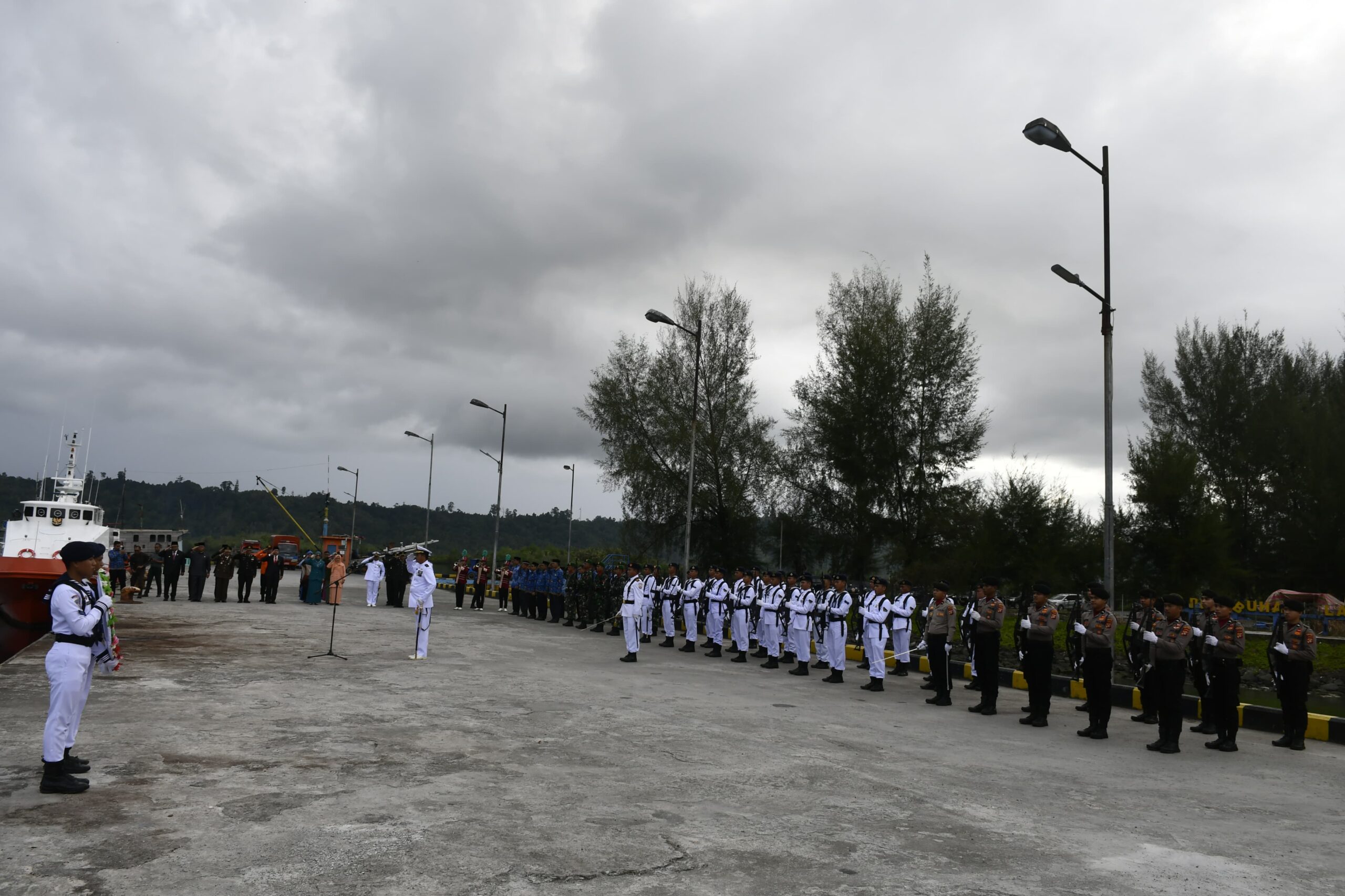 TNI AL, Simeulue,- Peringati Hari Pahlawan Tahun 2024, Danlanal Simeulue Letkol Laut (P) Oyu Mulia Sukmana, S.T., M.T., M.Tr. Opsla., yang diwakili oleh Palaksa Lanal Simeulue Mayor Laut (T) Firdaus bertindak sebagai Inspektur Upacara pada prosesi Upacara Tabur Bunga di Pelabuhan Laut/Kargo Sinabang dalam rangka memperingati Hari Pahlawan di Kabupaten Simeulue, Minggu (10/11/2024).