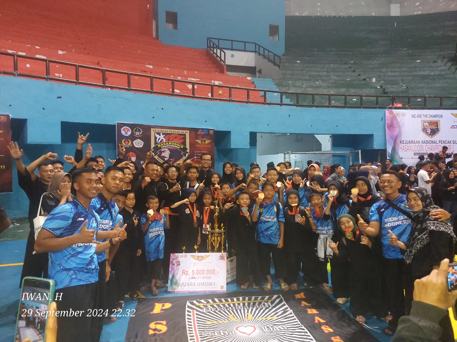 Makassar,- 30 September 2024,- Persaudaraan Setia Hati Terate (PSHT) Cabang 064 Makassar berhasil menjadi Juara Umum 1 dalam Kejurnas Pencak Silat Hasanuddin Championship I yang digelar selama tiga hari tanggal 27-29 September 2024, bertempat di GOR Sudiang, Makassar.