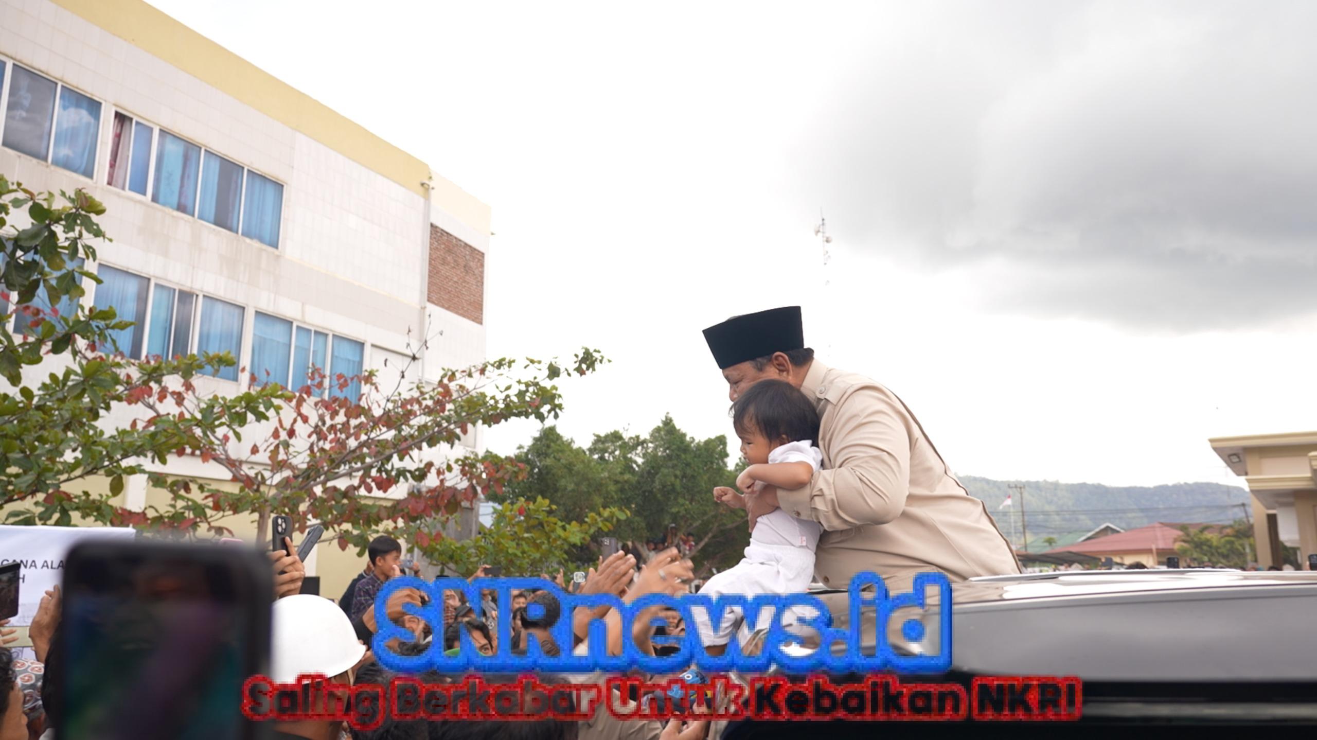 Di tengah kerumunan warga yang antusias, perhatian Prabowo tertuju pada seorang balita yang digendong ibunya. Sang ibu tampak begitu bersemangat berharap anaknya dapat bertemu langsung dengan Prabowo. Dan harapan itu terwujud.