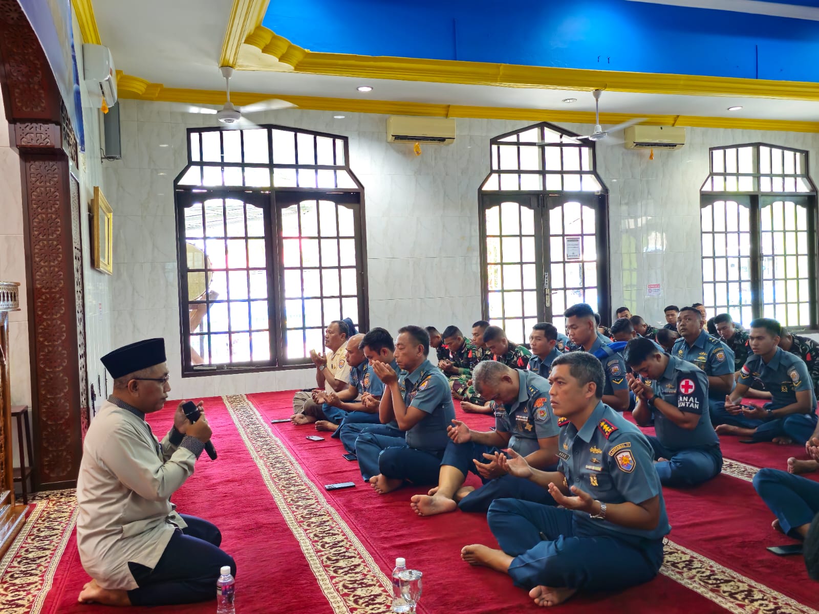 TNI AL, Bintan,- Prajurit Lanal Bintan beserta Jalasenastri Lanal Bintan ikuti Ceramah Agama Islam dalam rangka Memperingati Maulid Nabi Muhammad SAW 1446 H/2024, bertempat di Masjid Al Jihad Tanjung Uban, Bintan, Rabu (18/09/2024).