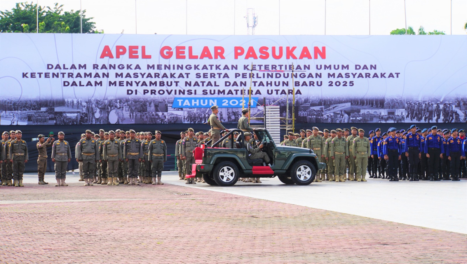 TNI AL, Belawan,- Prajurit Lantamal I menghadiri Apel Gelar Pasukan dalam rangka meningkatkan ketertiban umum dan ketentraman masyarakat serta perlindungan masyarakat dalam menyambut Natal 2024 dan Tahun Baru 2025 di Provinsi Sumatera Utara, yang dipimpin oleh Pj. Gubernur Sumatera Utara Dr. Drs. Agus Fatoni, bertempat di Lapangan Astaka Pancing, Jalan William Iskandar, Medan, Sumatera Utara, Selasa (17/12/2024).
