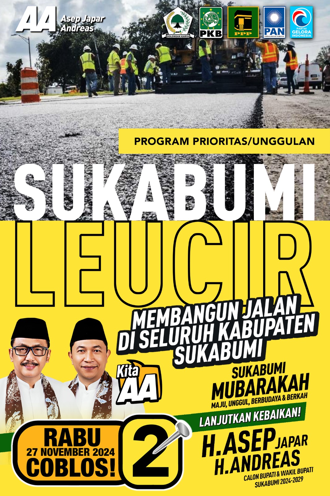 Sukabumi – Pasangan calon bupati nomor urut 2, H. Asep Japar dan H. Andreas, mengusung program unggulan “Sukabumi Leucir” dalam upaya meningkatkan kualitas infrastruktur jalan di Kabupaten Sukabumi.