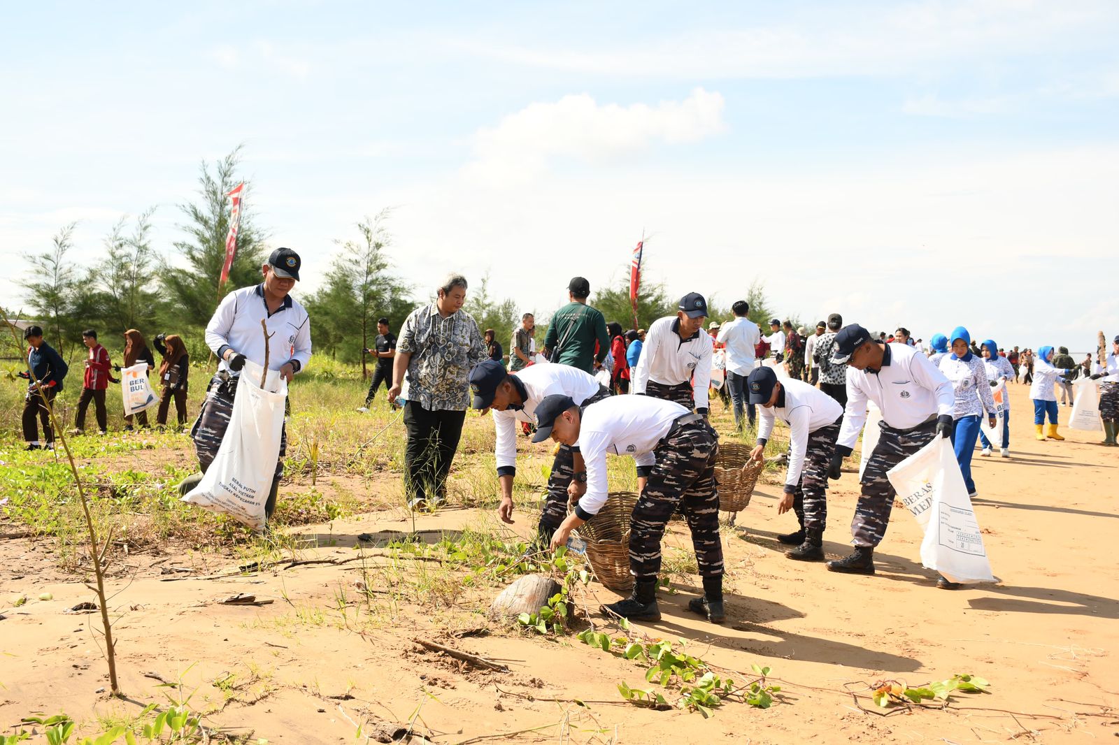 Kegiatan dipimpin oleh Komandan Pangkalan TNI Angkatan Laut (Lanal) Banjarmasin Kolonel Laut (P) Didik Kusyanto, didampingi Ketua Cabang 4 Korcab Xlll Daerah Jalasenastri Armada II Ny. Derry Didik Kusyanto dan dihadiri oleh Bupati Tanah Laut yang diwakili Plt. Kepala Dinas Lingkungan Hidup Kabupaten Tanah Laut Achmad Taufik, Saka Bahari, Tokoh Masyarakat dan para tamu undangan.