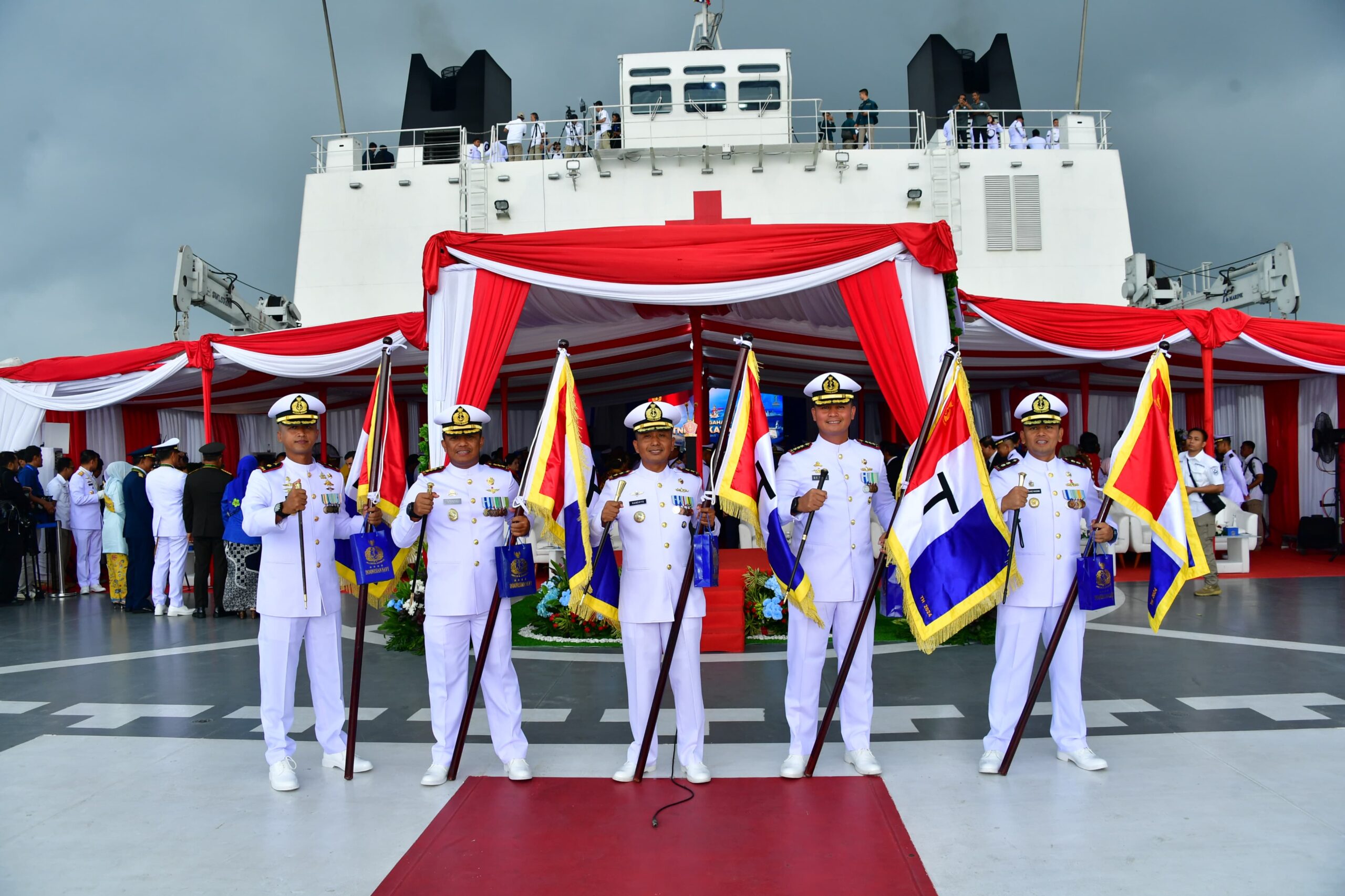 Komandan Lanal Dumai Kolonel Laut (P) Boy Yopi Hamel menerima langsung Bendera Lanal Teladan dan Piagam Penghargaan dari Kepala Staf Angkatan Laut (Kasal) pada Upacara HUT Ke-79 TNI Angkatan Laut Tahun 2024 yang diselenggarakan di Perairan Laut Jawa diatas geladak KRI dr. Radjiman Wedyodiningrat-992, Selasa (10/09/2024).