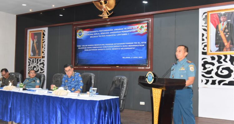 Wadan Lantamal I Wadan Lantamal I Pimpin Pembukaan RAPJ Tahun Buku 2024 serta Pengesaham RK dan RAPB Tahun Buku 2025 Puskopal Lantamal I TNI AL|April 17, 2025by snrnews.id TNI AL, Belawan,- Komandan Pangkalan Utama TNI Angkatan Laut I (Danlantamal I)